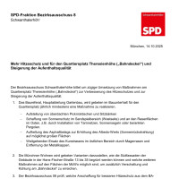 Der Bezirksausschuss Schwanthalerhöhe hat am 14.10.25 einstimmig einen Antrag der SPD-Fraktion für besseren Hitzeschutz am Quartiersplatz Theresienhöhe (aka Bahndeckel) angenommen.